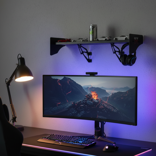 GT-R Racing Spoiler Wall Shelf 21 - Black Aluminum Wing Design Display Shelf